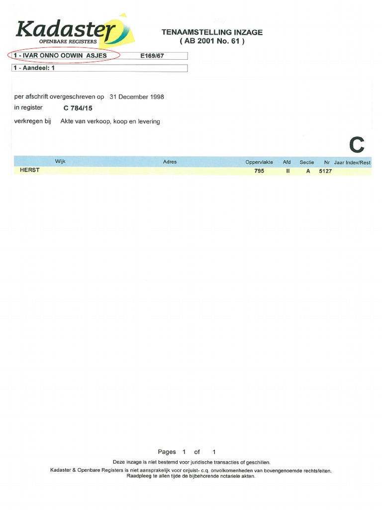 Door deze notariële akte van levering wordt de verkrijger aandeelhouder. De te gevestigde stichting kantoorhoudende te aan de ingeschreven in het handelsregister onder nummer hierna te noemen.