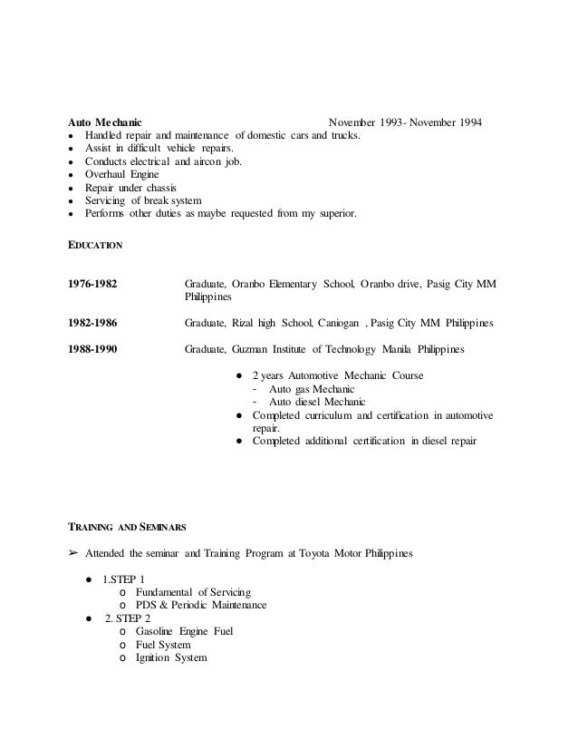 My perfect resume is your solution and takes the hassle out of resume writing. We have set up an automotive technician resume sample that can put you ahead of the race. Jobhero about us contact us terms and conditions. Complete guide to write a professional resume for mechanics. Keep the document simple and stick with a standard resume format such as the one used in this automotive resume sample. A mechanic resume sample that gets jobs.
