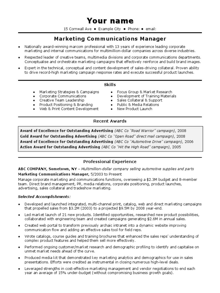 Think of your marketing resume as your professional presentation. So if youre looking to promote yourself for marketing communications manager jobs view the sample resume below and download the marketing communications manager resume template in word. Automotive manager resume statements.