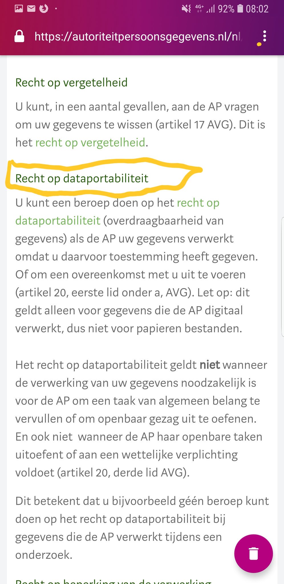 Uitzondering recht op vergetelheid. Daarmee doet de avg recht aan het principe dat privacy en vrijheid van meningsuiting gelijkwaardige grondrechten zijn. In deze gevallen zijn de persoonsgegevens onrechtmatig verkregen. Meer weten over het recht op vergetelheid. In een interview met de nos van vandaag wordt het recht op vergetelheid uit de avg door de voorzitter van de autoriteit persoonsgegevens aangemerkt als een belangrijke verandering ten opzichte van de oude privacywetde vraag is of dat zo is. Op de website van de autoriteit persoonsgegevens staat een overzicht van alle situaties waarin het recht van toepassing is.