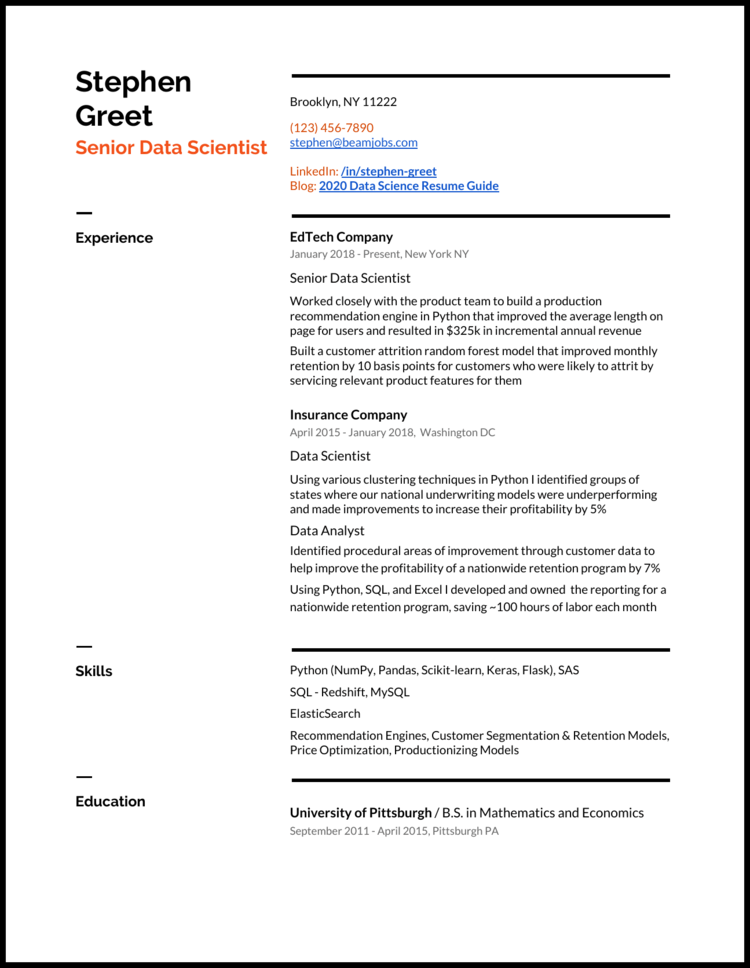 Guide the recruiter to the conclusion that you are the best candidate for the big data engineer job. 100 unique resume with our big data engineer resume example and guide for 2020.