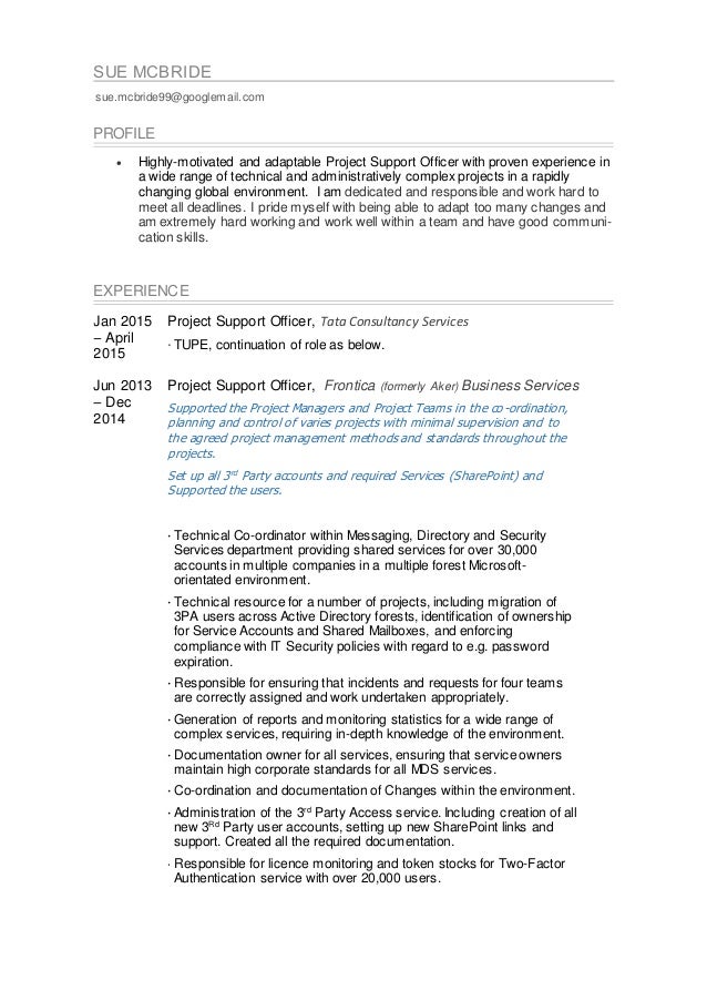 Crafting a project support officer resume that catches the attention of hiring managers is paramount to getting the job and livecareer is here to help you stand out from the competition. Administrative officers work in office environments where they oversee and coordinate daily activities. Livecareer has 24583 business support officer cvs in its database. Livecareers cv directory contains real cvs created by subscribers using livecareers cv builder. This is an actual cv example of a business support officer who works in the business support officer industry. Upload your cv and easily apply to jobs from any device.