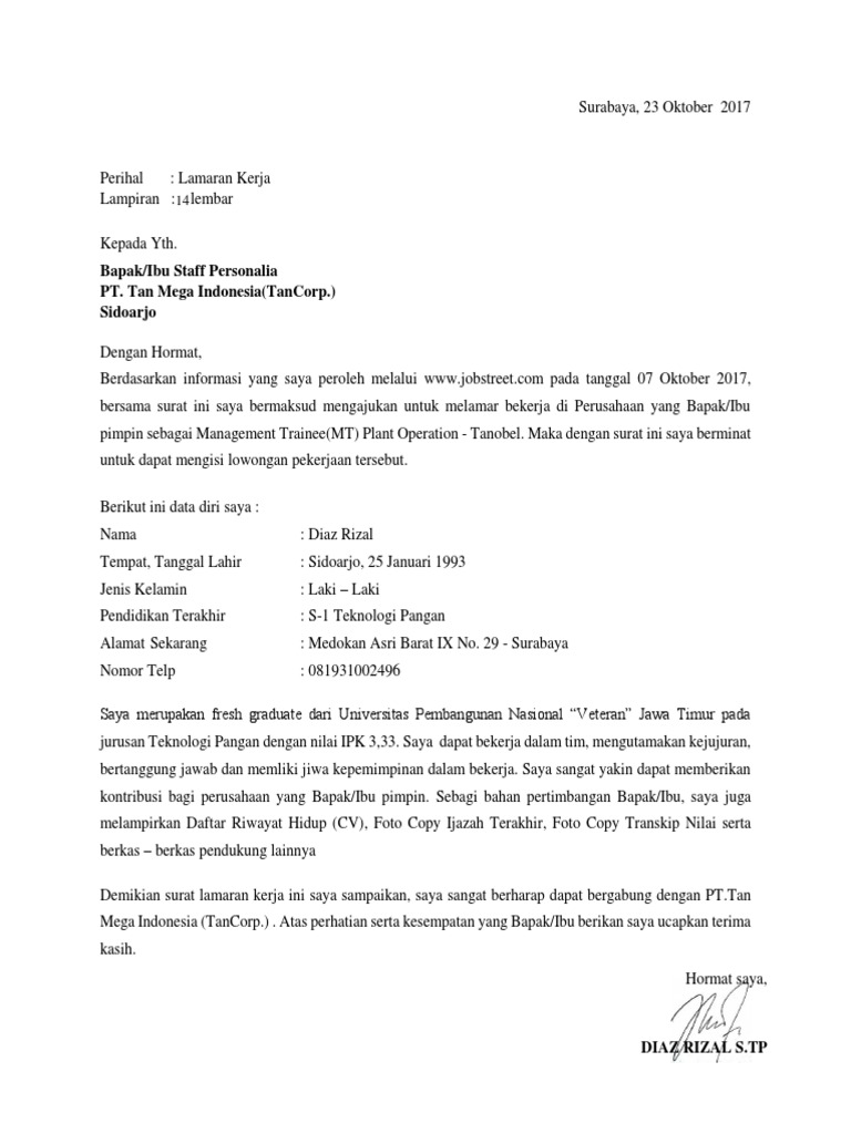 Saya telah berkarir di pt. Contoh surat lamaran kerja daftar riwayat hidup cvresume sample job application letter including resume job application cover letter and curriculum vitae surat lamaran kerja management trainee x. Contoh surat untuk ibu yang menyentuh hati. Baik mereka yang baru lulus kuliah s1 atapun mereka yang lulus sma atau smk tidak hanya mereka yang fresh graduate yang membutuhkan surat lamaran kerja mereka yang ingin pindah kerja juga membutuhkan surat lamaran kerja untuk tempat pekerjaan. Masih banyak di antara kita yang masih menulis cover letter seadanya bahkan tidak menulisnya sama sekali saat mengirim lamaran. Bakrie electric selama 10 tahun dimulai dari tingkat trainee hingga mencapai.