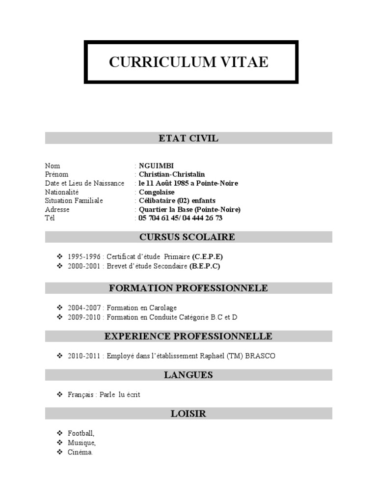 Ces modèles peuvent être exploités dans un cadre personnel ou commercial. Afin de valoriser votre parcours scolaire ou professionnel il est important dadopter quelques méthodes afin de mettre toutes les chances de votre côté et décrocher le job de vos rêvesretrouvez ici quelques astuces afin de bien présenter votre parcours. Il faut que vous arriviez à mettre en avant des mots en rapport avec lemploi que vous recherchez. Les différents types de cv mis en ligne sont proposés dans différents formats éditables. Les jeunes diplômés demandent souvent sils doivent inclure les cours incomplets ou les qualifications non obtenues sur leur cv. Vous naurez plus ensuite qua personnaliser votre cv avant de vous lancer dans votre recherche demploi.