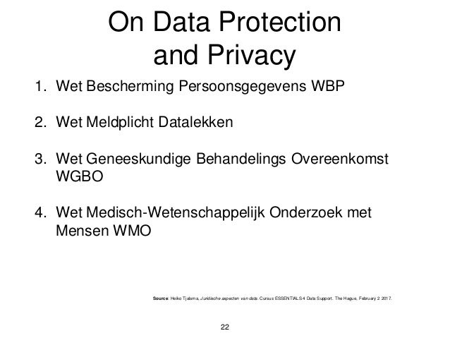 In verband met de bescherming van de privacy van natuurlijke personen stelt de wet een aantal eisen aan de verwerking van persoonsgegevens. Aparte richtlijn politie en justitie. General data protection regulation gdpr. Daarnaast krijgt u inzicht in de wijze van handhaving de rol en bevoegdheden van de privacytoezichthouder de autoriteit persoonsgegevens. De cursus begint met een korte schets van de wbp en de achtergrond van deze wet. De wet bescherming persoonsgegevens wbp geldt niet meer.