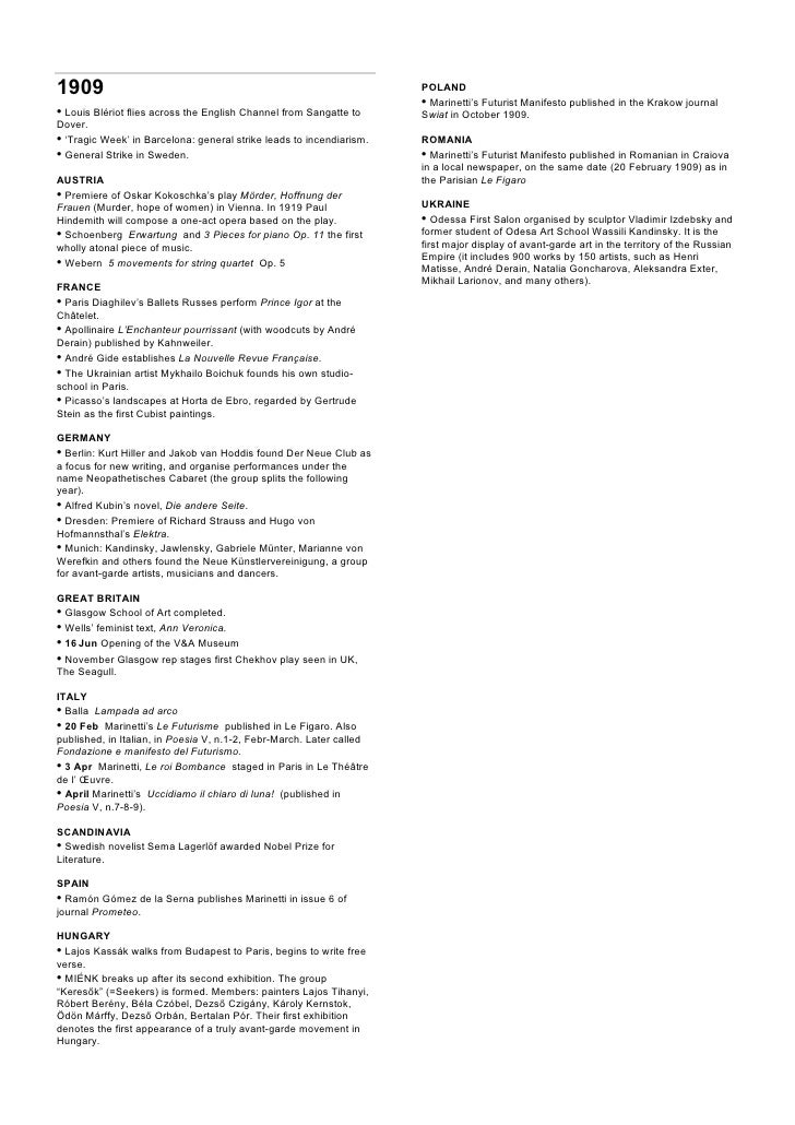European Avant Garde Chronology