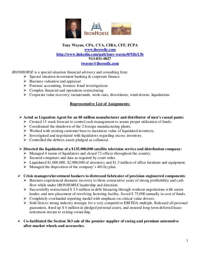 T Wayne Ironhorse Cv For Liquidations Wind Downs Receiverships
