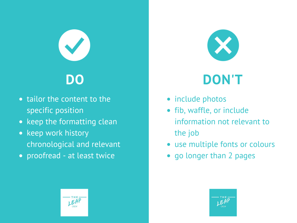 You could be the most qualified candidate by far but fail to get the job because your cv doesnt meet the expectations of the hiring manager. Fortunately weve rounded up the ultimate list of resume dos and donts from the traditional rules to the brand spanking new ones. Easily apply to jobs with an indeed resume. Try and get straight to the most pertinent points. The donts to avoid in your resume. Curriculum vitae dos and donts.