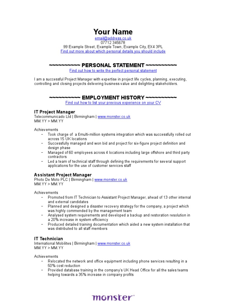 Whilst prince2 is the largely considered to be the most essential qualification for project managers cross industry in the uk. Project manager cv example with detailed writing guide and professional cv template to create your own interview winning project manager cv. A personal statement makes for a good intro to a project management cv as long as you keep it short and to the point within the region of a hundred words or so. All industries make use of project management professionals. Budgeting and cost control. Tenant hall blenheim grove.
