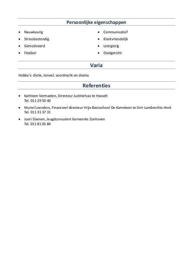 Hierdoor krijgt de lezer van jouw cv een nog beter beeld van wie jij bent. Daarbij is het belangrijk dat deze competenties relevant zijn voor de functie waarop je solliciteert of de baan die je ambieert. Ook kun je persoonlijke kwaliteiten toevoegen aan bijvoorbeeld je linkedin profiel. Voorkom dat je met je mond vol tanden komt te staan en bereid deze vraag thuis dus alvast voor. Goed met je collegas communiceren samen tot een consensus komen en elkaar ondersteunen zijn voor veel werkgevers essentieel. Columbia pictures ben jij een teamplayer sociaal en zelfstandig.