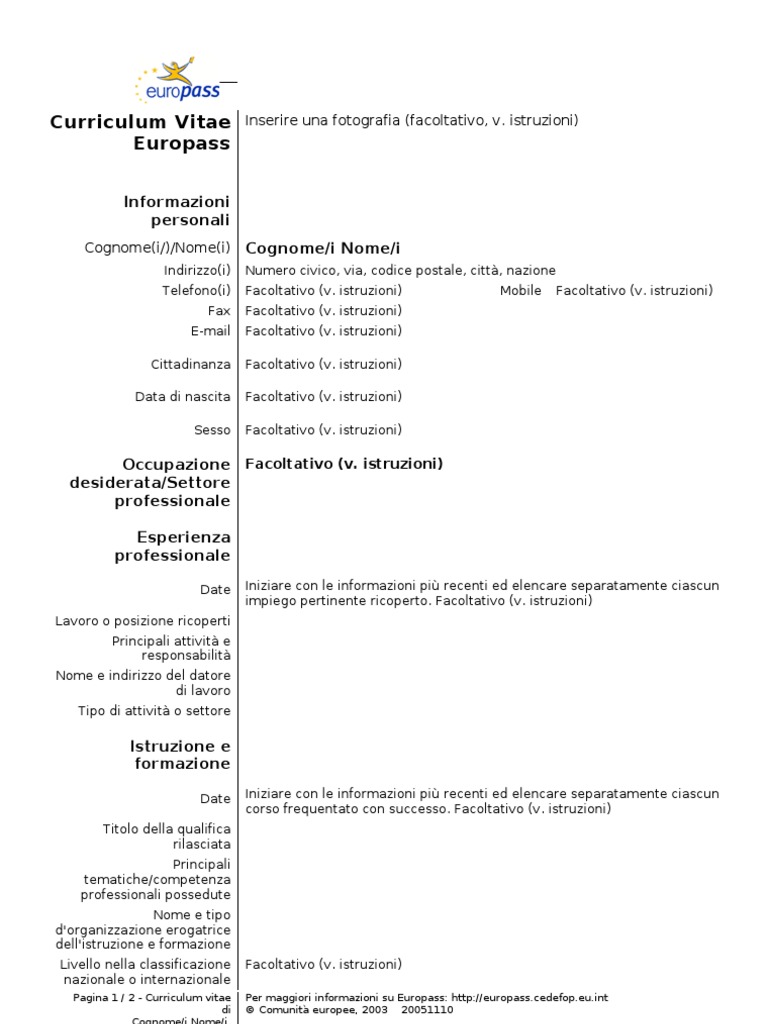 Il modello di cv più diffuso in europa. La tua valutazione per curriculum vitae europeo da compilare. Naviga più velocemente naviga nella rete 2 volte più veloce. Di facile consultazione risulta familiare ai datori di lavoro e agli istituti distruzione. Formazione iniziale e in servizio degli insegnanti. 6 curriculum vitae europass.