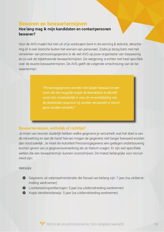 In sommige situaties legt de wet en regelgeving voor het onderwijs een langere bewaartermijn op. Sommige documenten moeten minimaal 7 jaar bewaard worden. Hoe lang mag je deze gegevens bewaren. Brainnet is een kennisspeler op de nederlandse inhuurmarkt. En correspondentie mag u zonder toestemming na afloop van de sollicitatieprocedure maximaal vier weken bewaren. 16 januari 2020.