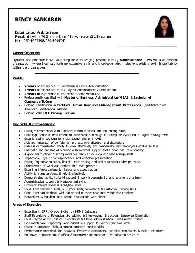 Hr admin profile cv. Hr administrators maintain records for employees working at a company. Hr assistants keep employee records post job openings and interview applicants. Hr cv profile the candidate highlights that they have previous work experience in human resources hr making them familiar with the payroll systems and employment law. Updating personnel files ensuring that you have the correct documentation typing and sending out letters dealing with holidays and any absences. Additionally they indicate some personal qualities such as interpersonal skills and being sensitive to peoples privacies which would be highly beneficial for the role that they are applying for. Clerical receptionist or secretarial.