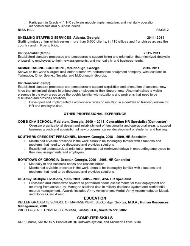 How to describe your experience on a resume for human resources to get any position you want. In doing so human resources managers ensure the privacy and well being of staff through problem solving.
