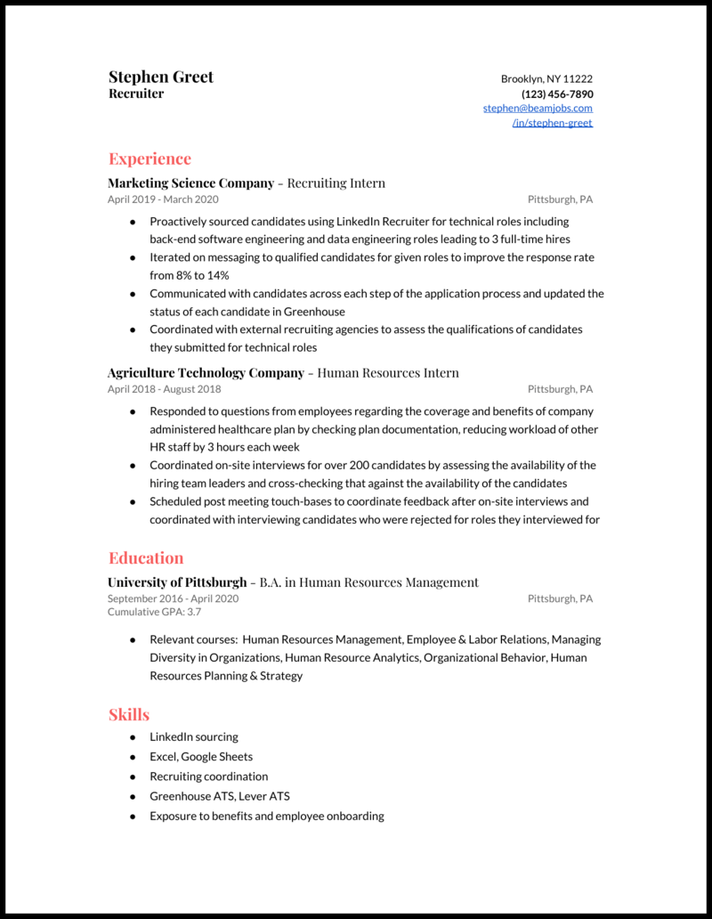 The following recruiter resume samples and examples will help you write a resume that best highlights your experience and qualifications. Recruiting assessing and hiring top talent.