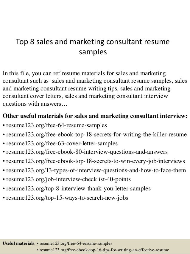 Sales positions exist in nearly every industry. If you have relevant experience in consulting go for a resume summary. Typical sample resumes for sales consultants highlight duties like identifying potential customers making offers answering to inquiries offering advice to hesitant clients and closing sales. Career has focused sales and marketing energies on thoroughly penetrating fortune 1000 accounts. Your profile section should call attention to your proudest marketing career moments that convey your ability as a marketing consultant. Email protected current job.