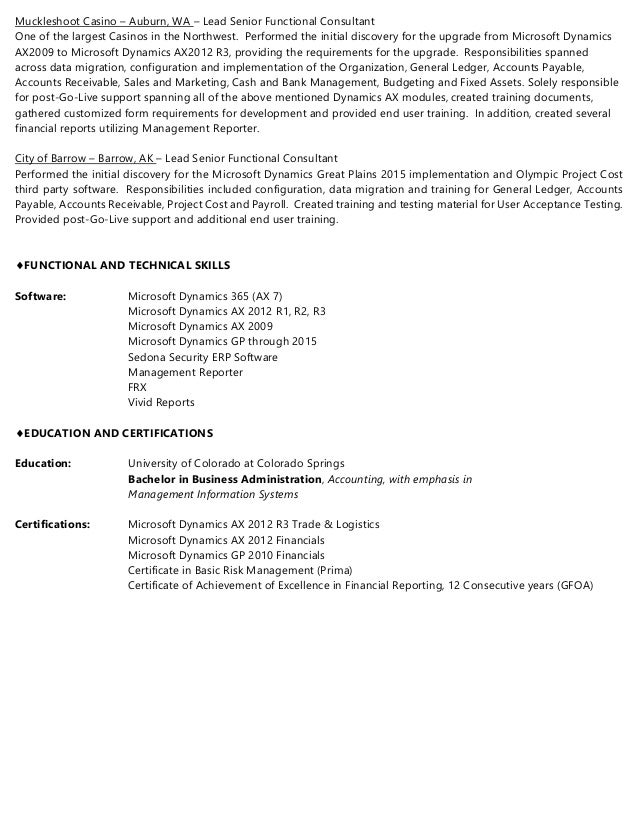 Microsoft dynamics navision technical consultant resume in kolkata wb india february 2015. Your resume should address the precise needs and wants of the company you are applying to especially when it comes down to the specifics of the microsoft dynamics job role. Develop strategy to best leverage the microsoft dynamics crm platform. Dynamics gp functional consultant microsoft dynamics gp oklahoma city ok 65 per hour a microsoft end user is looking to add a functional consultant to their team. Email your resume and cover letter to. Microsoft dynamics gp consultant resume examples samples working as a team with other firm technical and business process oriented consultants configuring and deploying microsoft solutions specifically gp on sql platforms including gl ap ar payroll inventory order entry hr and purchasing modules.