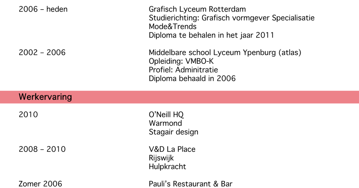 Die staan dan op dezelfde plek als bij het chronologisch cv. Bij het vermelden van je opleiding op je cv noem je je meest recente opleiding of opleiding waar je mee bezig bent als eerstewerk vanaf daar terug tot de middelbare school. Hoe leg je dat uit in je sollicitatiegesprek. Het kan zijn dat je bent begonnen met een opleiding tot leraar maar gedurende de opleiding tot de ontdekking kwam dat het beroep je toch niet echt aansprakof je werd tijdens je opleiding ziek waardoor je niet meer in staat was om de opleiding te. Zelfde eindresultaat op papier maar een totaal andere bagage. Onder je persoonsgegevens en profielschets.