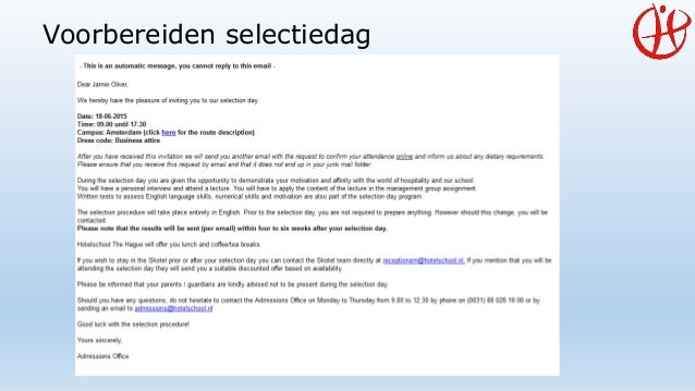 Motivatiebrief hotelschool the hague. Saskia de ruijter szilvia zsoldos selectie proces at hotelschool the hague 2. Het eerste jaar ga je in intern het skotel in. Annemarie heeft 4 functies op zijn of haar profiel. Ik had hele hoge verwachtigingen omdat de hotelschool den haag heel goed bekend staat. De school heeft twee campussen in den haag en in amsterdam met in totaal meer dan 2500 studenten waarbij 40 van de studenten uit het buitenland komen met meer dan 250 medewerkers. Hotelschool the hague is a dynamic international hospitality business school with campuses in the hague and amsterdam.