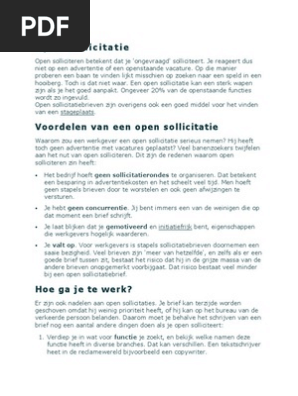 De opbouw van een sollicitatiebrief is vrijwel altijd hetzelfde. Als je deze opbouw altijd hanteert weet je dat je niets vergeet te vermelden. Wat is de opbouw van een sollicitatiebrief. Portable document format. Wanneer je graag voor een bepaald bedrijf wilt werken waar momenteel geen vacatures beschikbaar zijn dan kun je een open sollicitatiebrief insturen. Nog meer tips op een rij.