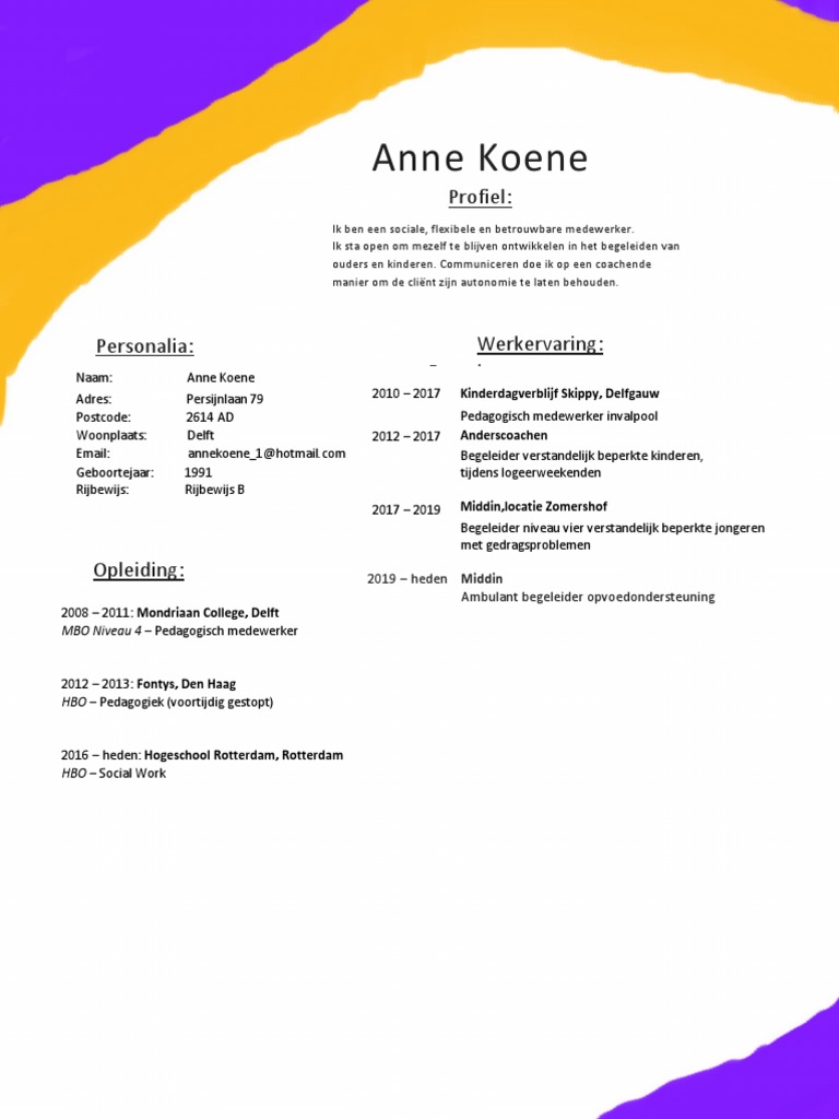 Cv Voorbeeld Pedagogisch Medewerker Kinderopvang Perfect Cv