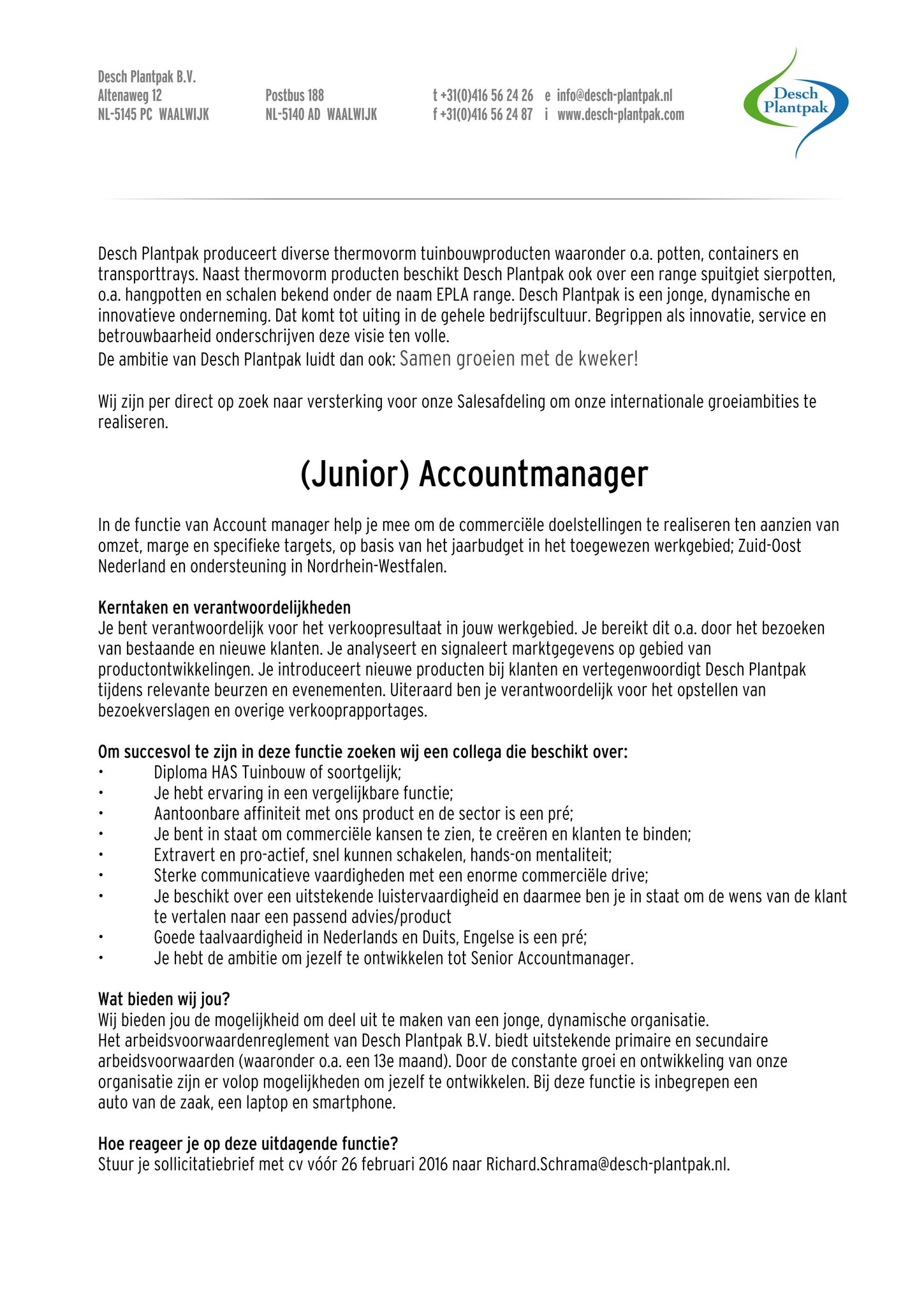 Een voorbeeld sollicitatiebrief junior accountmanagerdeze brief kunt u als voorbeeld gebruiken om een goede sollicitatiebrief junior accountmanager te kunnen schrijven. Vacature junior accountmanager geachte mevrouw van der wijden sinds het eerste jaar van de hbo opleiding commerciële economie is het mijn doel om werkgevers ervan te overtuigen dat ze veel meer kunnen doen met uitzendkrachten. Vul hier de achternaam van je contactpersoon in in een gesprek dat we deze week hebben gevoerd heeft u aangegeven dat ik het beste een motivatiebrief kon schrijven als ik nog steeds geïnteresseerd was in de functie junior accountmanager. Dat heb ik van mijn vader geleerd die zijn bedrijf succesvol heeft gemaakt zonder vaste medewerkers. Tekst kopiëren van een andere site of nietszeggende tekst als reactie wordt automatisch herkend en afgekeurd. Na het behalen van mijn diploma kon ik aan de slag als junior accountmanager in een bedrijf dat kappersproducten verkoopt.