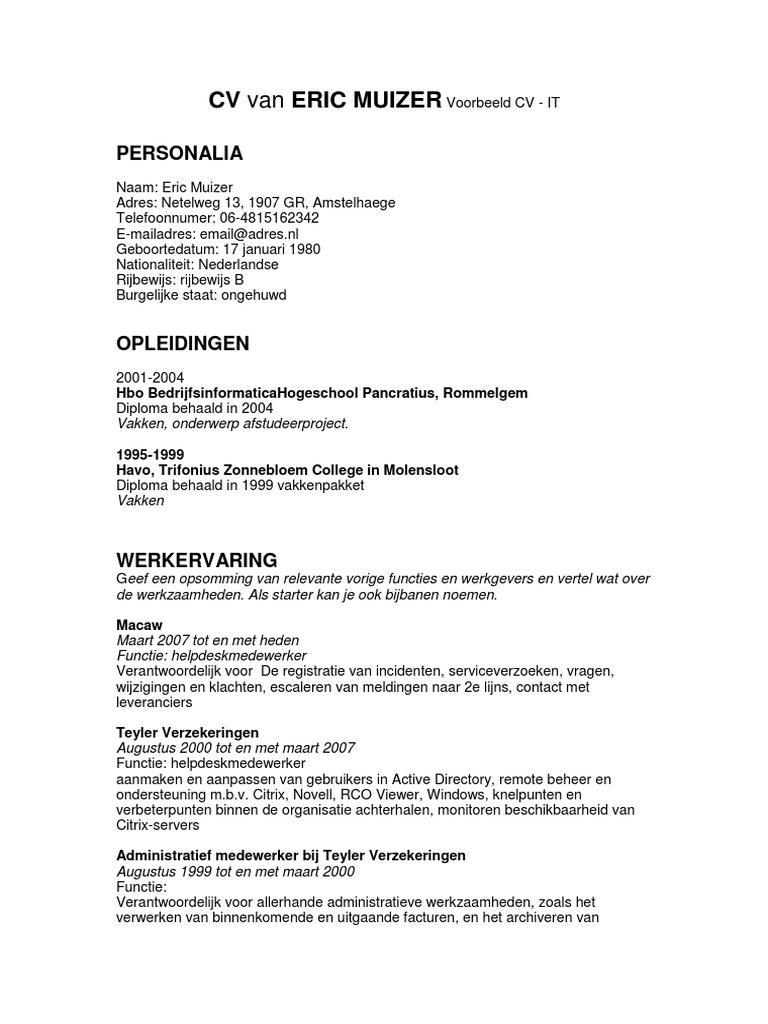 Cv Curriculum Vitae Sollicitatiebrief Maken Curriculum