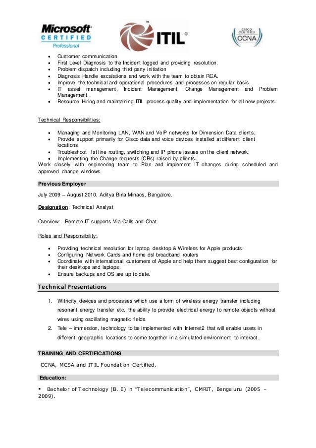 Voip technical support resume. Customer technical support resume samples 45 40 votes for customer technical support resume samples. Provided technical support tdmvoip soft switch and new voip broadband telephone services division. Prepare for hard work. Voice over internet protocol. Cisco unified call manager 6x through 8x cisco unity connection cer drs. Provide quality remote support for leading voip telecom providers for business and soho.