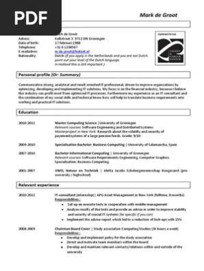 Hieronder vind je een voorbeeld van een cv voor een student. Advice we might give for this resume. Relevant information about your master for example relevant courses andor the subject and grade of your thesis. Yyyy yyyy name master utrecht university utrecht optional. Other candidates might have more job experience than you do. It explains section by section how to create the correct cv format for students and what should go in a student cv.