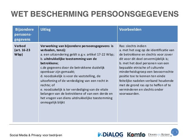 Wet bescherming persoonsgegevens uitleg. De wbp is in nederland de basis voor de bescherming van de persoonsgegevens. Anderen mogen die gegevens niet vewerken. Bent u hier via een pagina in wikipedia terechtgekomen. Daarnaast mogen persoonsgegevens slechts worden verzameld als daarvoor een precieze doelomschrijving wordt gegeven. De cliëntenraad aan zet het recht op privacy is geregeld maar er zijn uitzonderingen. Tevens houdt het college toezicht op de verwerking van persoonsgegevens in nederland wanneer de verwerking plaatsvindt overeenkomstig het recht van een ander land van de europese unie.